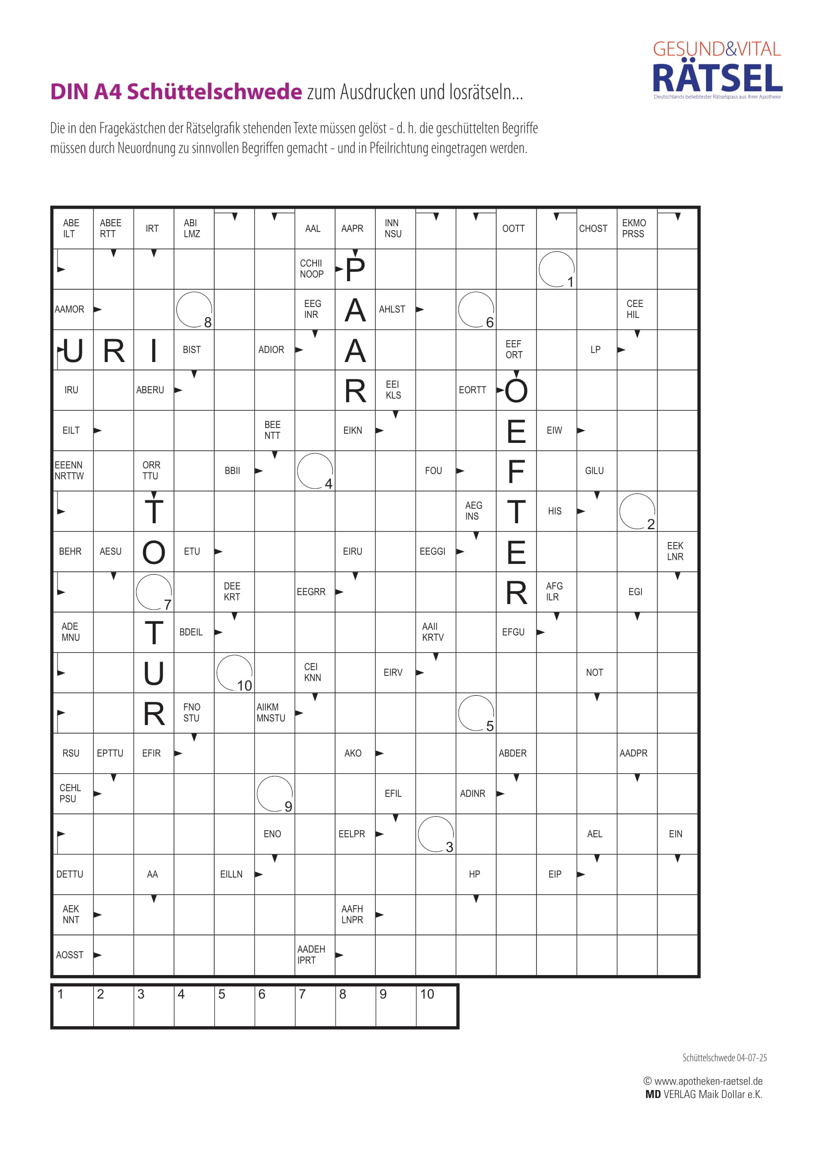 Kostenlose Rätsel (Schüttelschweden-Rätsel) zum Downloaden, Ausdrucken und losrätseln.